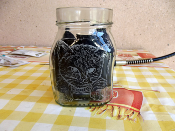 chat gravé sur un bocal-atelier gravure adulte