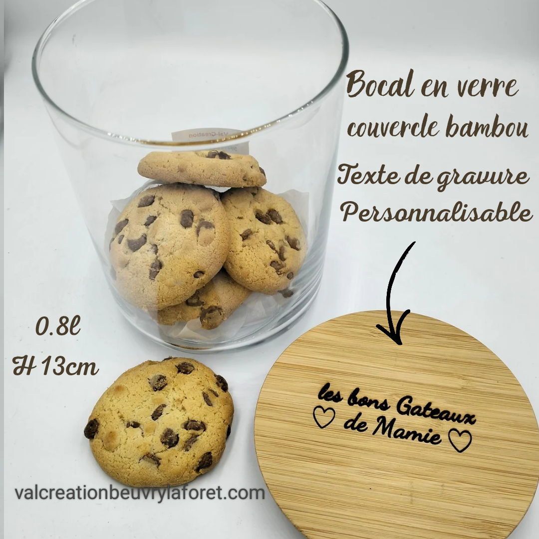 bocal personnalisé les bons gateaux de mamie en verre couvercle bambou pot cuisine zéro déchet éco responsable