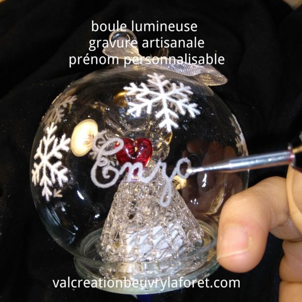 Boule ange lumineuse personnalisable prénom texte coeur flocon