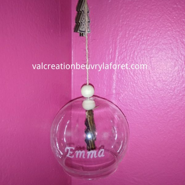 boule verre à suspendre personnalisée prénom par gravure artisanale