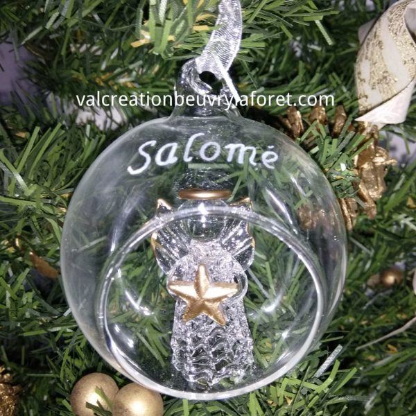 boule ange noel prénom gravure personnalisable, boule verre ouverte à accrocher