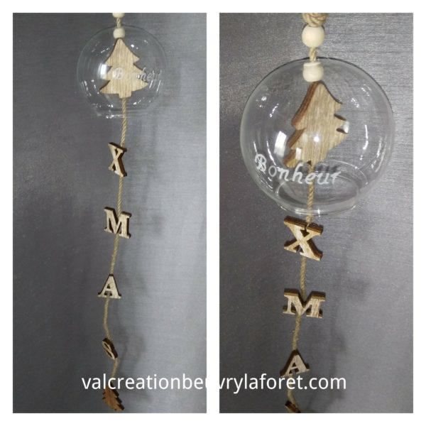 boule verre sapin prénom bonheur sujet bois Xmas lettre gravure personnalisable