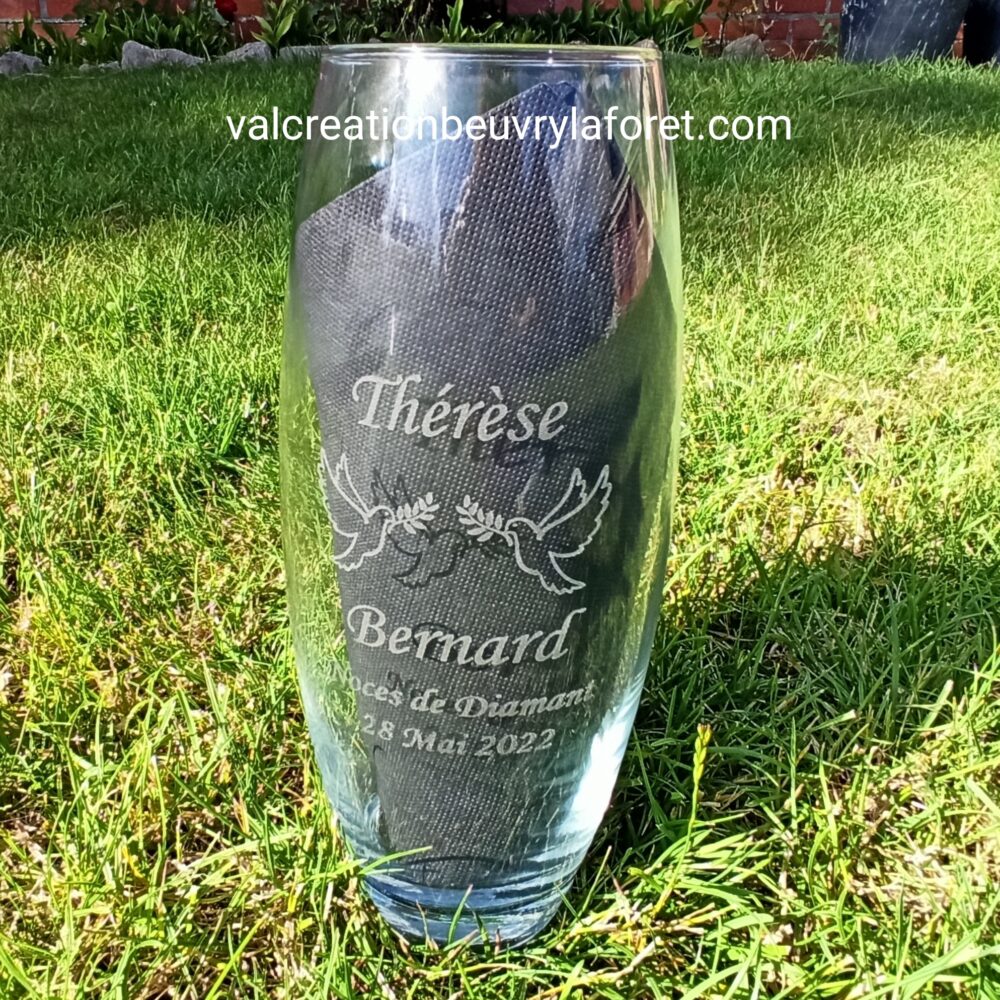 vase gravure colombe brin d’olivier noces diamant 60 ans de mariage personnalisable