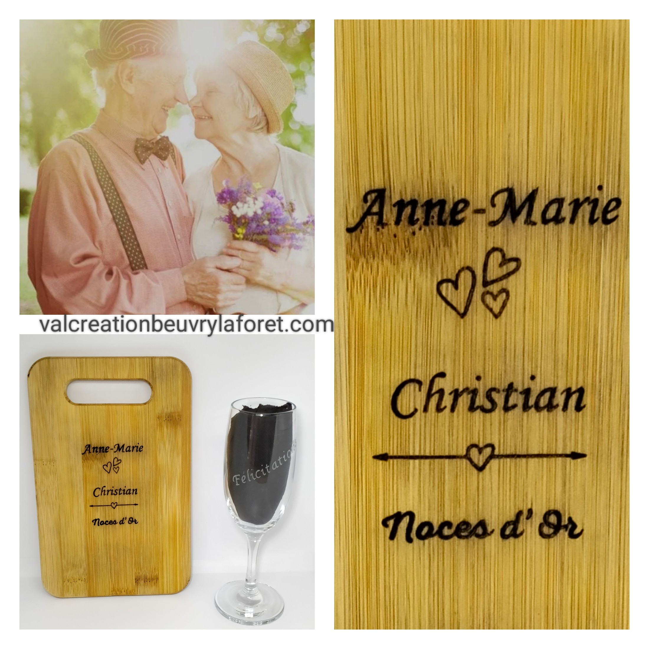 planche à découper noces d’or gravure personnalisé prénom pour anniversaire de mariage