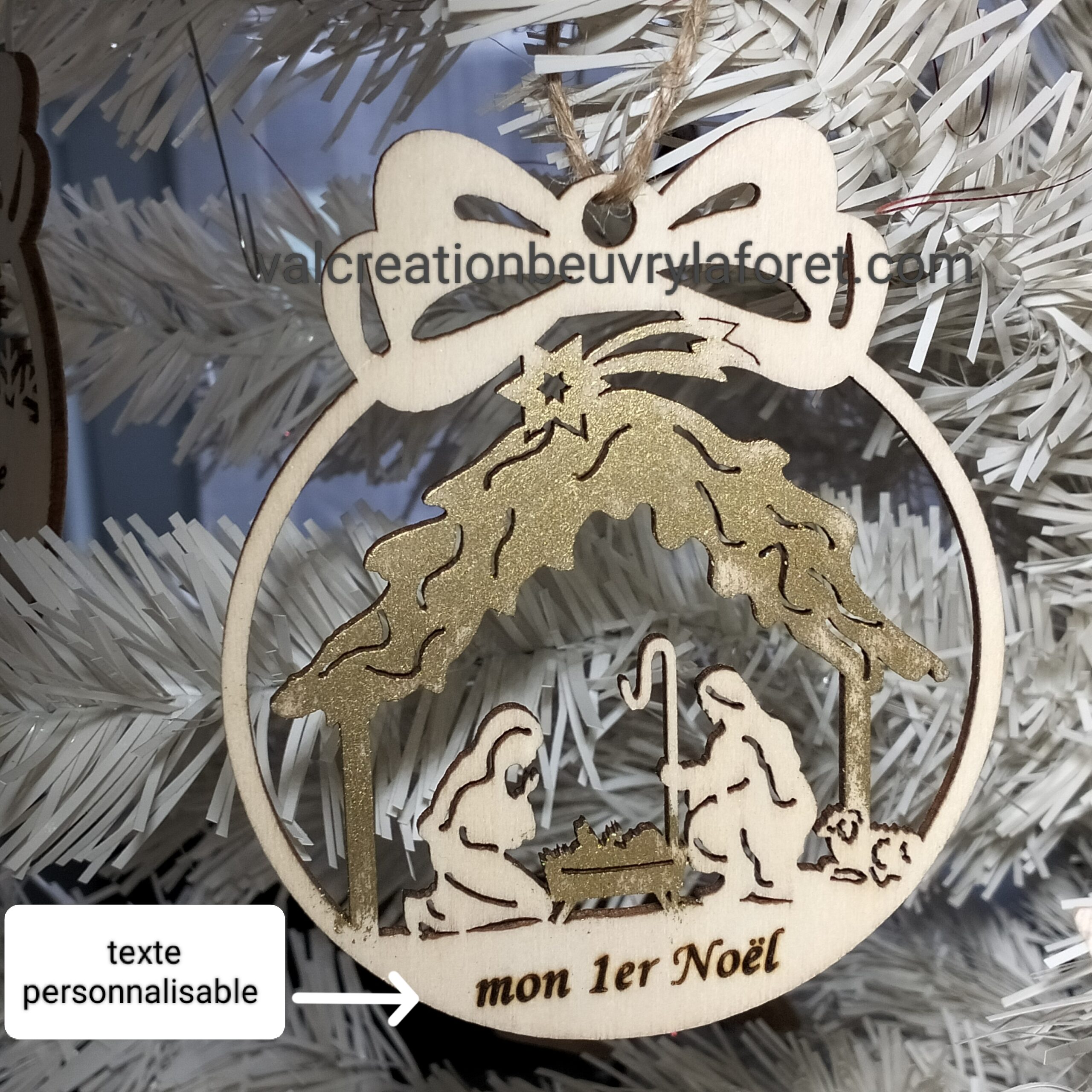 boule bois crèche de Noël personnalisable prénom religieuse jésus Marie Joseph