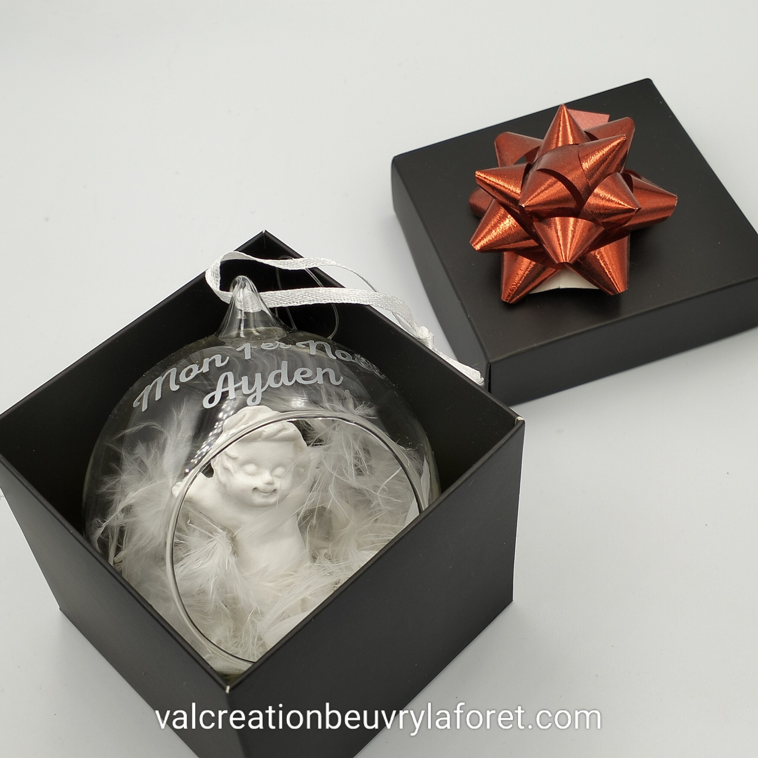 coffret boule verre ange premier noel ou prénom personnalisable cadeau à offrir