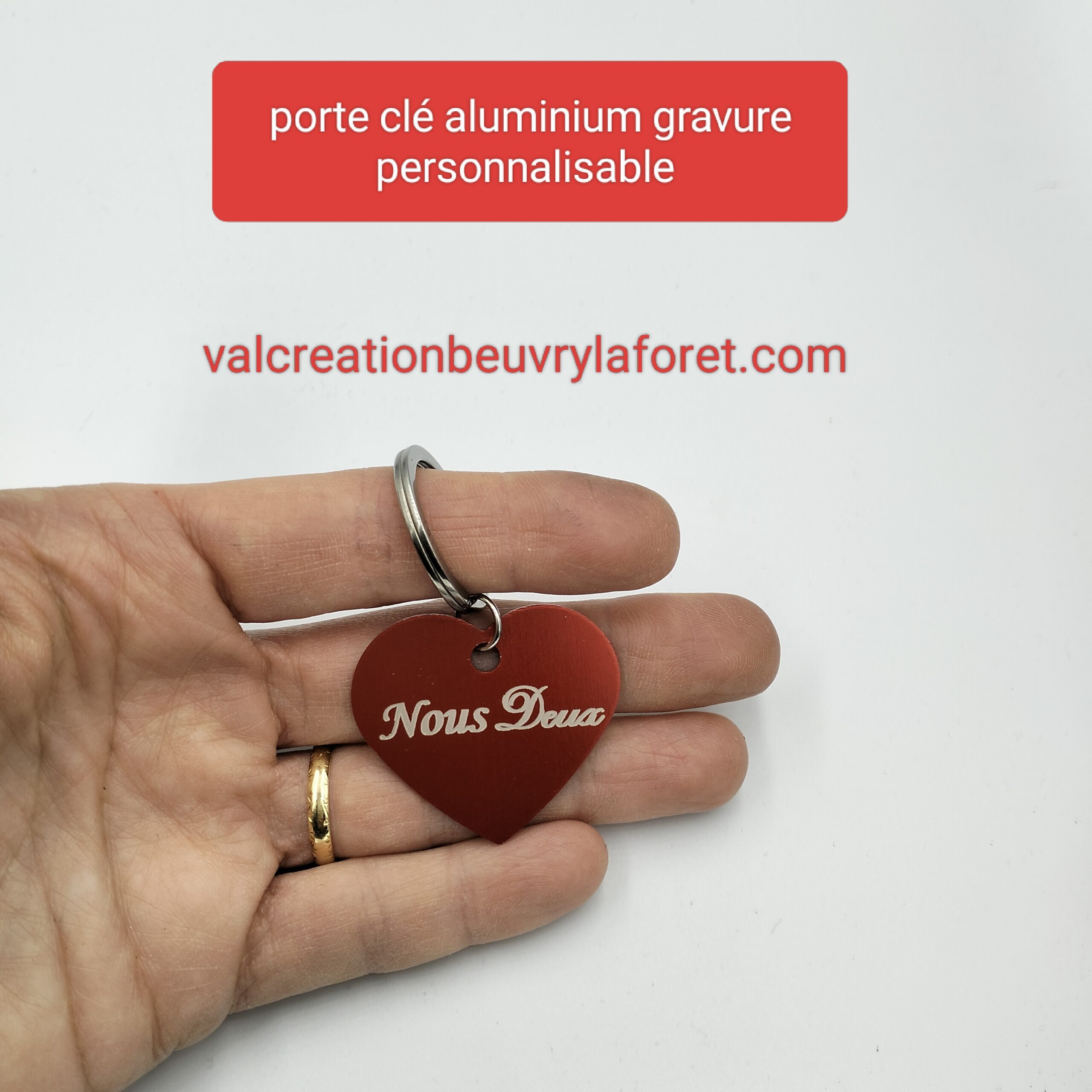 porte clé rouge gravure nous deux rouge en aluminium pour saint valentin
