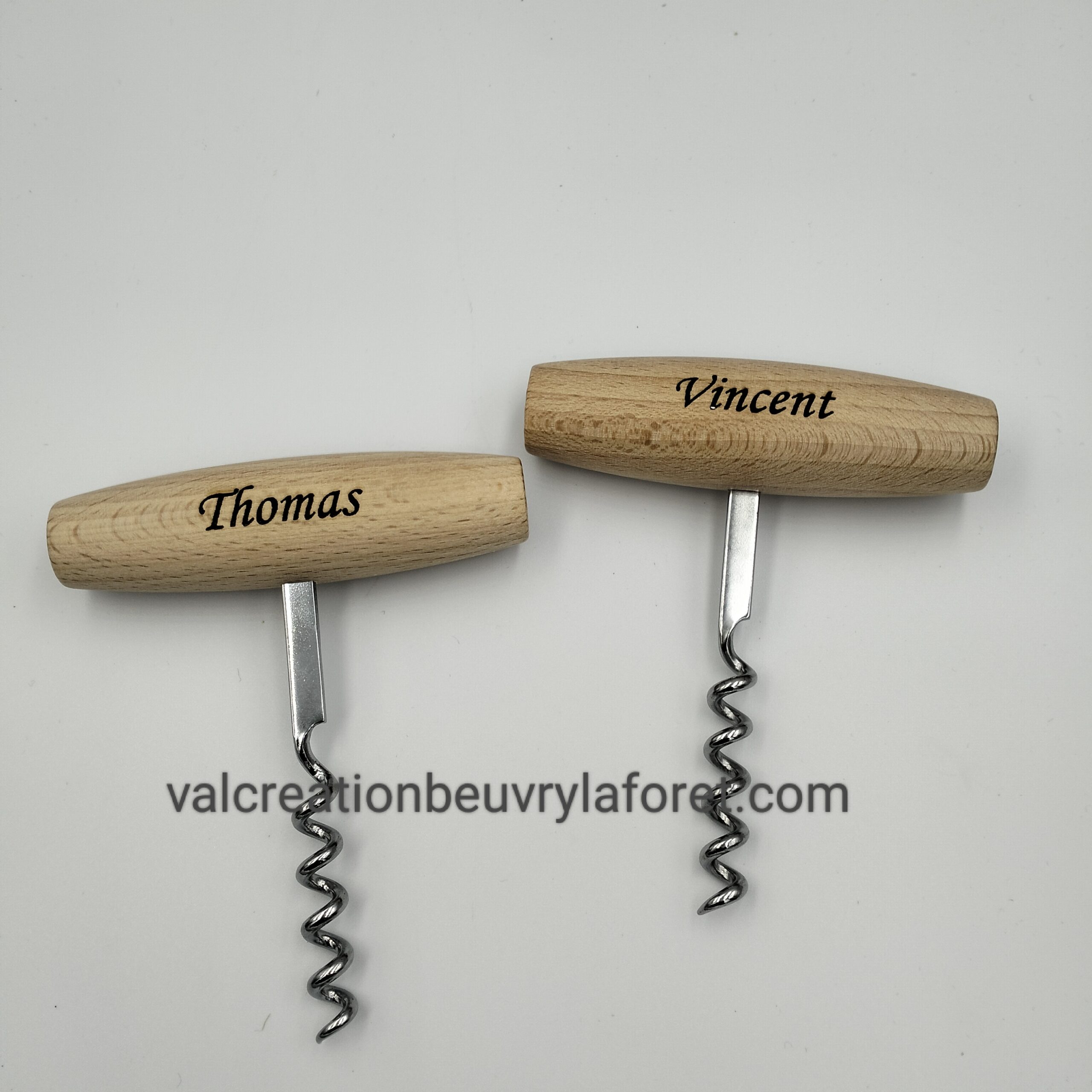 tire bouchon prénom personnalisable en bois gravé ouvre bouteille vin