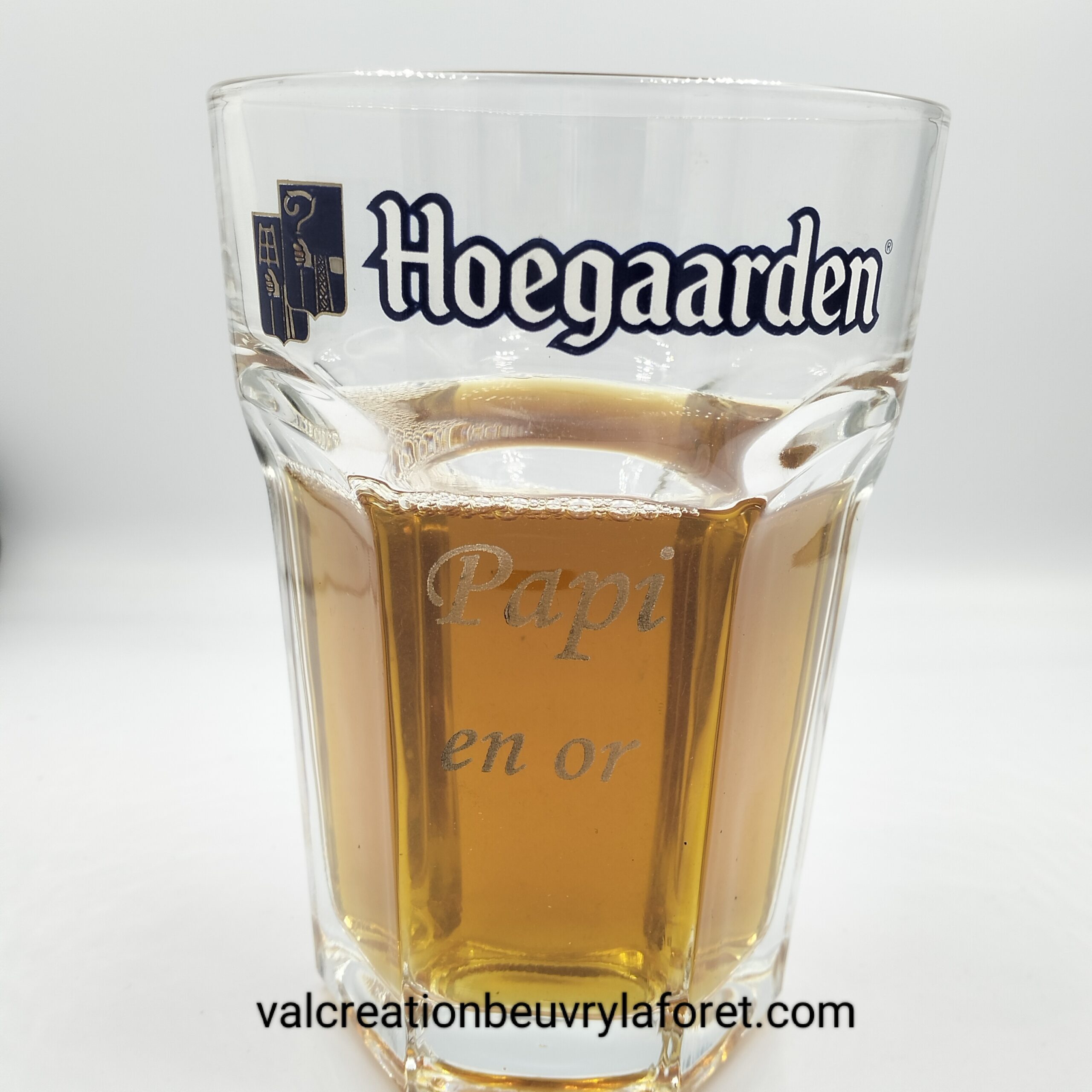 verre bière hoegaarden gravure papi en or , bière belge fête des papi