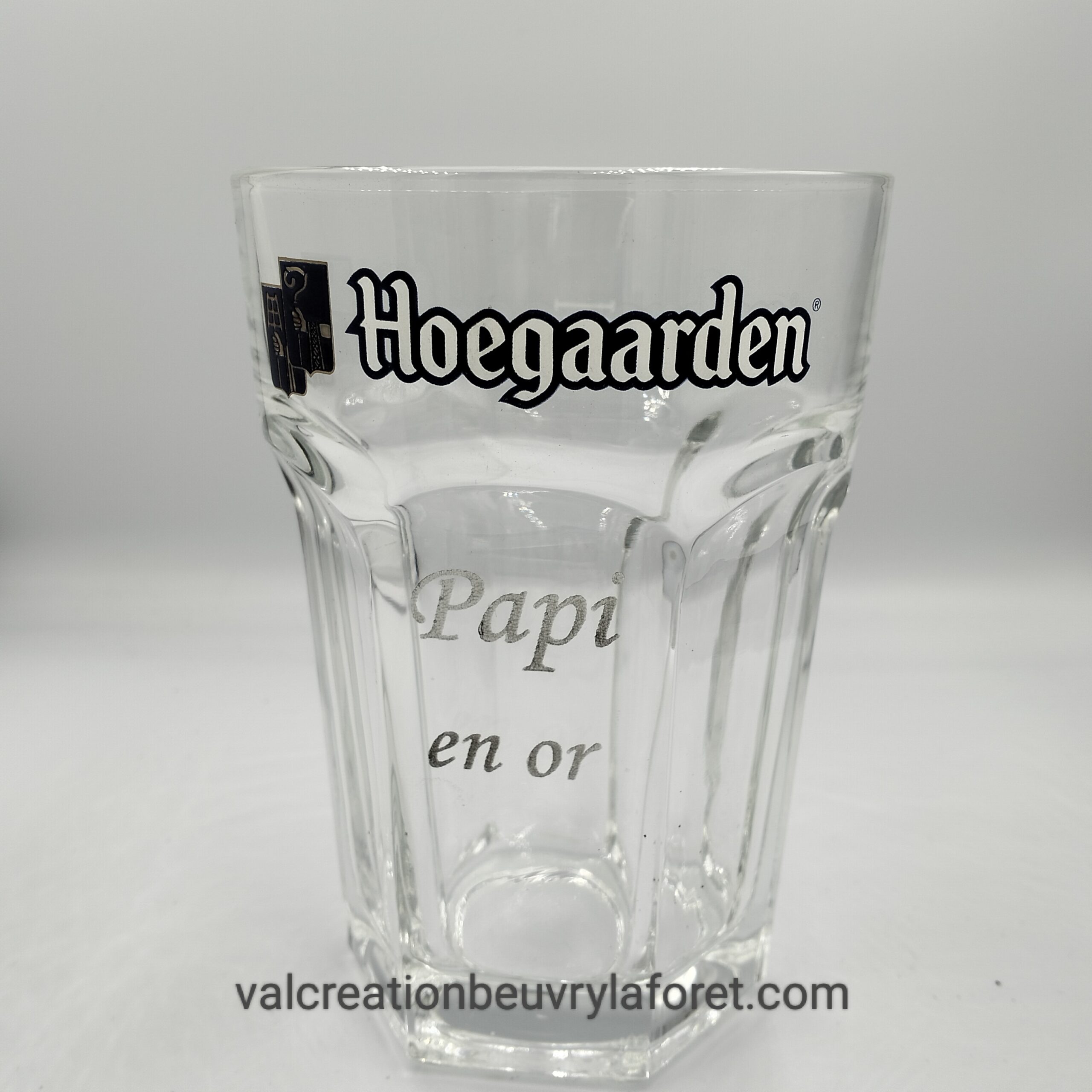verre bière hoegaarden gravure papi en or