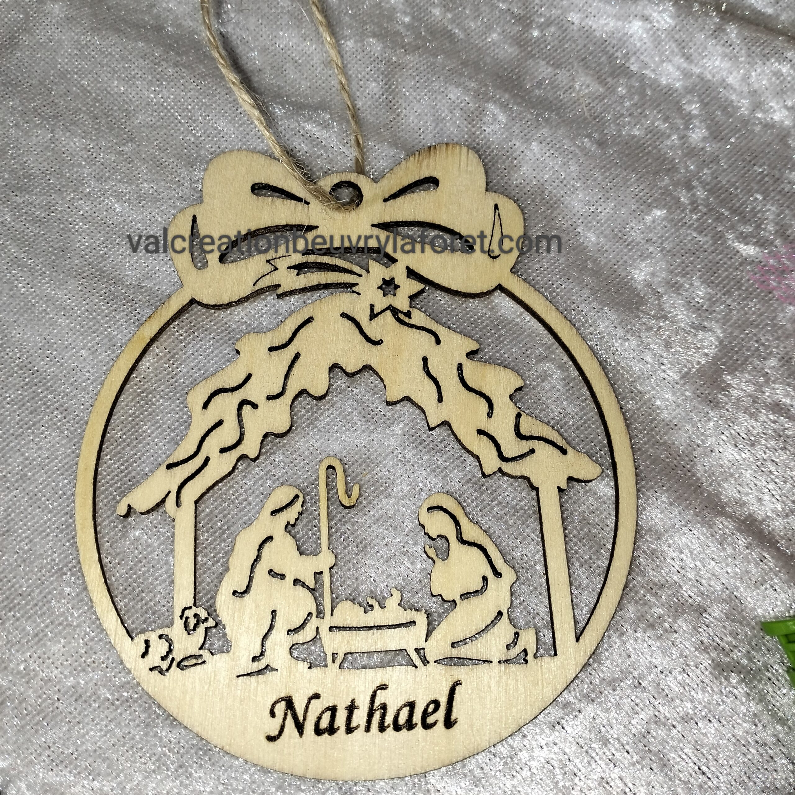 boule bois crèche de Noël personnalisable prénom religieuse jésus Marie Joseph