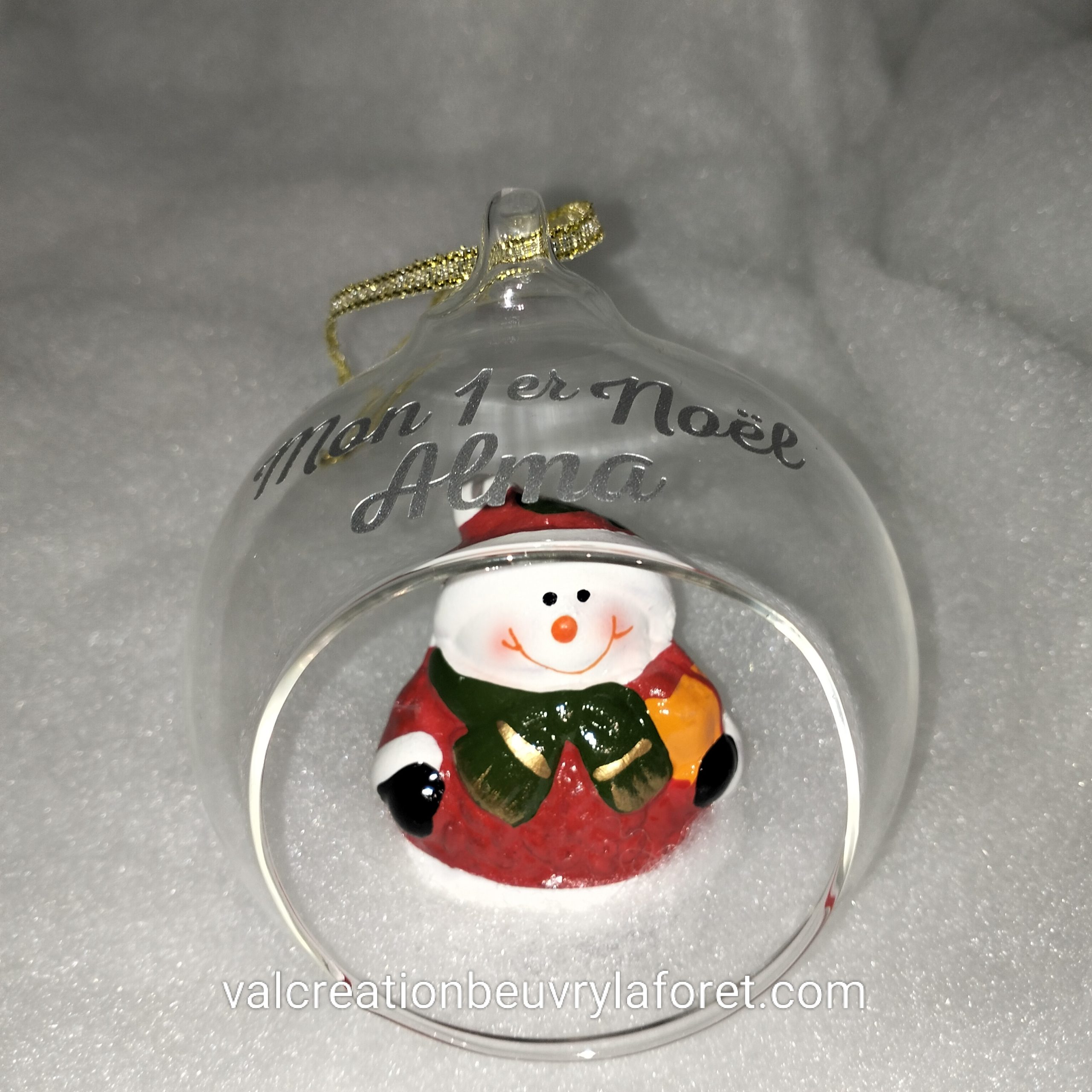 boule de noel en verre personnalisable premier noel prenom bonhomme neige